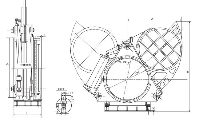 1、本閥由左右閥體、扇形閥板、不銹鋼波紋管、驅(qū)動裝置、夾緊裝置等部件組成;
