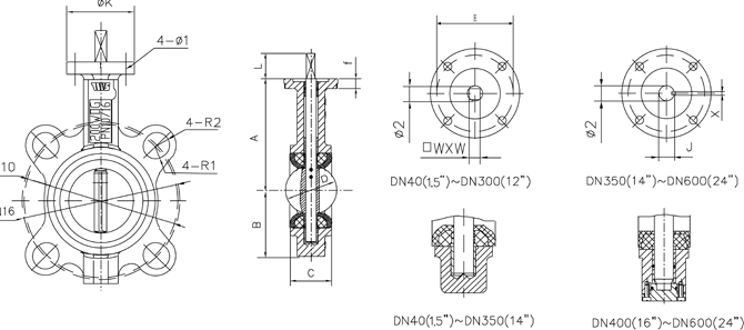 主要外形尺寸-PN16(16bar)